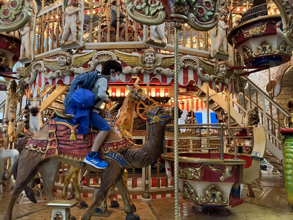 屋内の2階建てメリーゴーランドには乗りました。